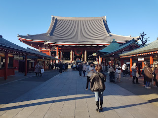 Area Sensoji Temple jelasnya ramai sekali dengan turis karena selain salah satu destinasi wisata di Tokyo, area depan adalah area perbelanjaan yang terdiri dari ratusan kios. Dari berjualan souvenirs, ragam street food, resto, oleh-oleh sampai ke pernak Pernik kebutuhan sehari-hari. Area tersebut bernama Asakusa Nakamise Shopping Street.